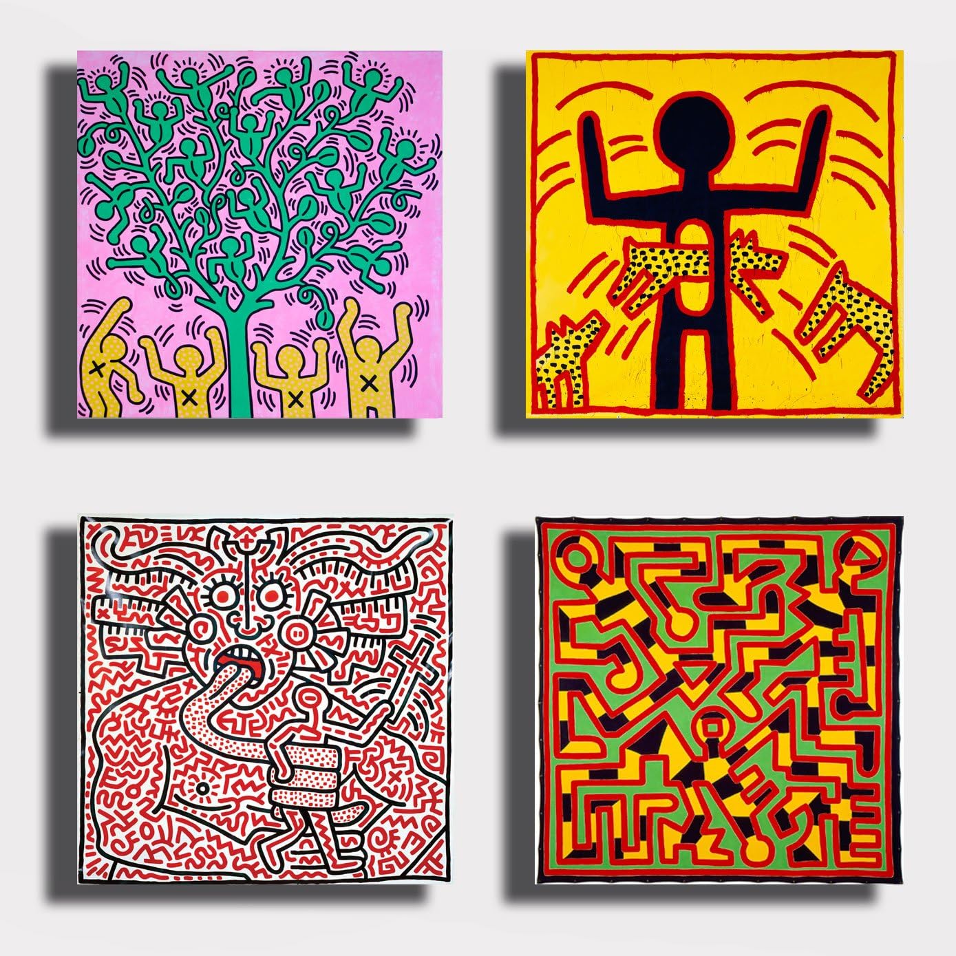 Quadri Moderni Stile Haring 4 Pezzi 30x30 Cm Pop Art Stampa Tela Canvas Arredamento Arte Astratto Xxl Arredo Soggiorno Salotto Camera Da Letto Cucina Ufficio Printerland It Decorazioni Per Interni Arte