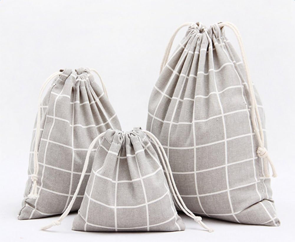 Kentop 3 X Sacca Da Viaggio Stile A Quadri Di Cotone E Lino Sacchetti Di Te Sacchetti Cordato Portaoggetti Di La Biancheria Sacchetti Di Finitura