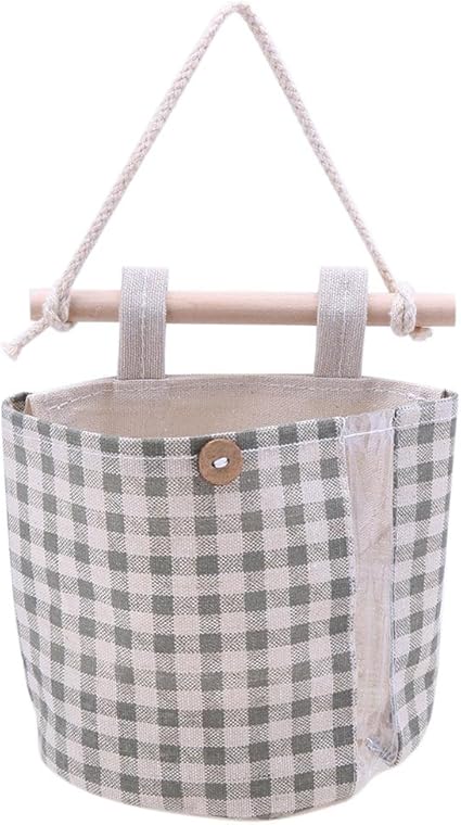 Ruikey 1 Pcs Semplice Borsa Da Appendere Difensiva In Cotone E Lino A Quadri Per Riporre Il Soggiorno In Famiglia Giallo Mobili Cameretta Portaoggetti