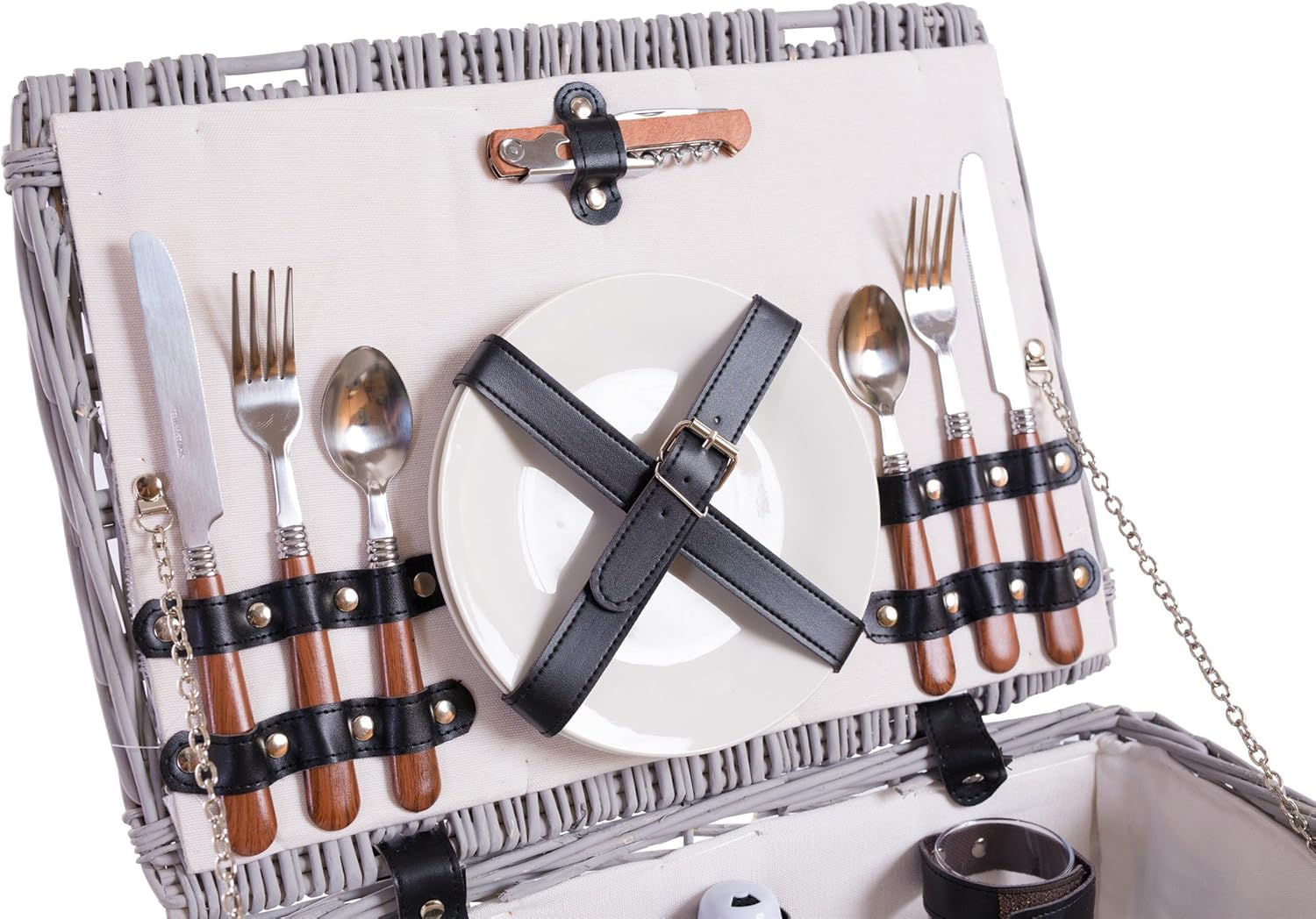 4 Persona Grigio A Quadri In Cestino Da Picnic In Vimini Di Salice Con Raffreddamento Posate Piatti Giardino E Giardinaggio Cestini E Panieri