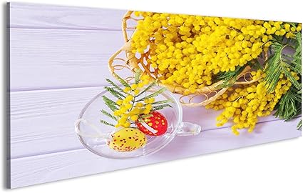 Islandburner Quadro Moderno Mimosa Fiore In Fiore Vetro Cuo E Uova Di Pasqua Su Fondo In Legno Biglietto Di Auguri Profondita Di She Stampa Su Tela Quadri Moderni Hjf Pano Amazon It Casa
