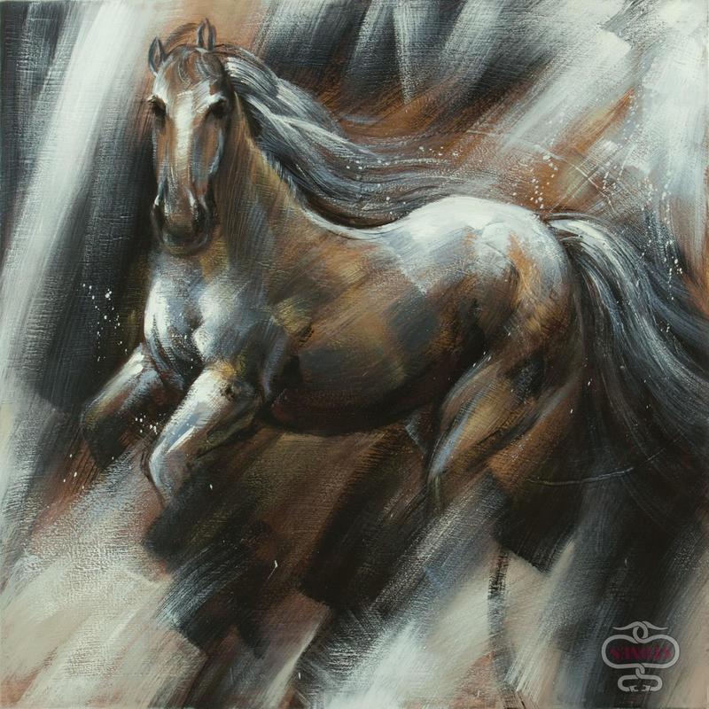 Dipinto A Mano Cavallo In Corsa Quality Home