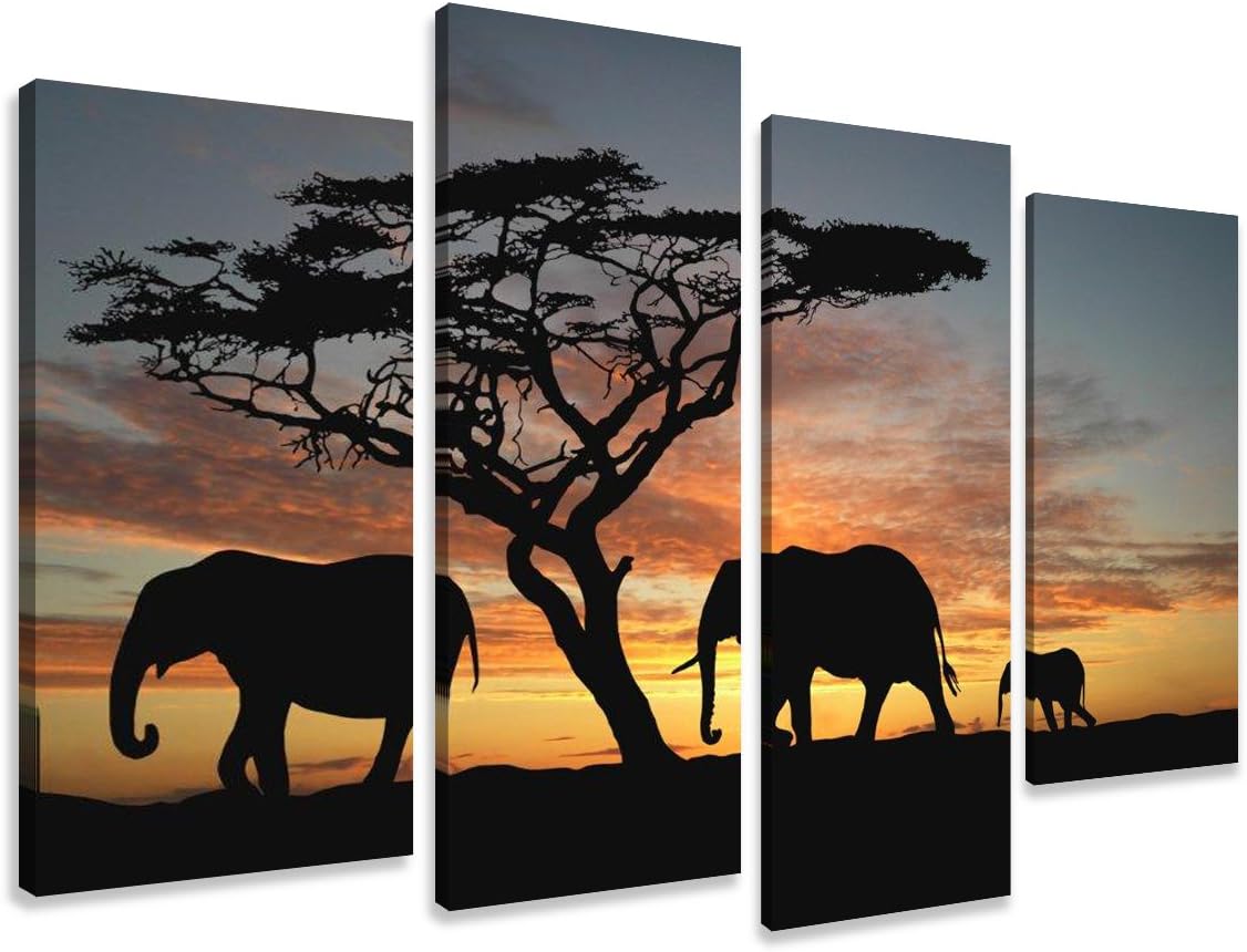 Quadro Moderno Tramonto Savana Elefanti Stampa Su Tela Montato Su Telaio Ebay