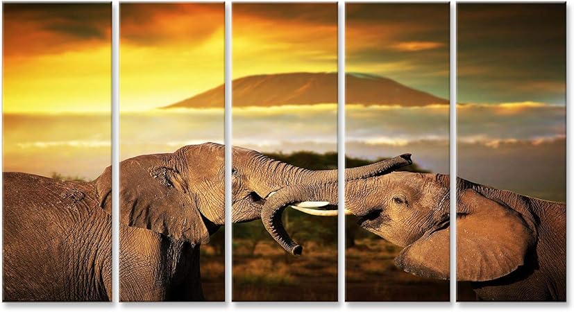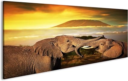 Quadri Moderni Gli Elefanti A Giocare Con I Loro Tronchi Savana Kilimangiaro In Sonnenunte Stampa Su Tela Quadro X Poltrone Salotto Cucina Mobili Ufficio Casa Fotografica Formato Xxl Dhk Amazon It