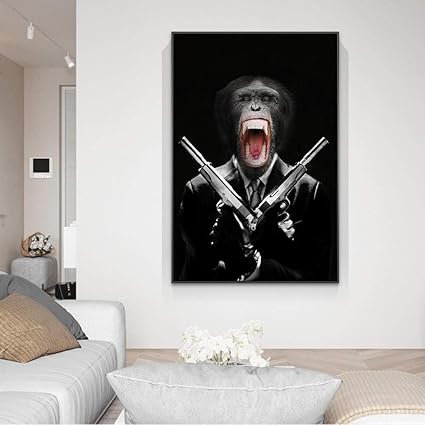 Immagini Di Scimmie Che Tengono Pistole Su Tela Poster E Stampe Su Tela Scimmia In Tela Su Tela Quadri Di Animali Decorazioni Per La Casa 50x70cm Senza Cornice Amazon It Casa E Cucina