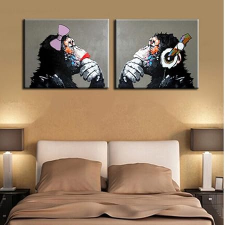 Decorazioni Per La Casa Arte Da Parete Immagini Di Scimpanze Di Gorilla Nera Scimmia Del Fumetto Che Dipinge Quadri Astratti Di Animali Su Tela 40x60cmx2pc Nessuna Cornice Amazon It Casa E Cucina