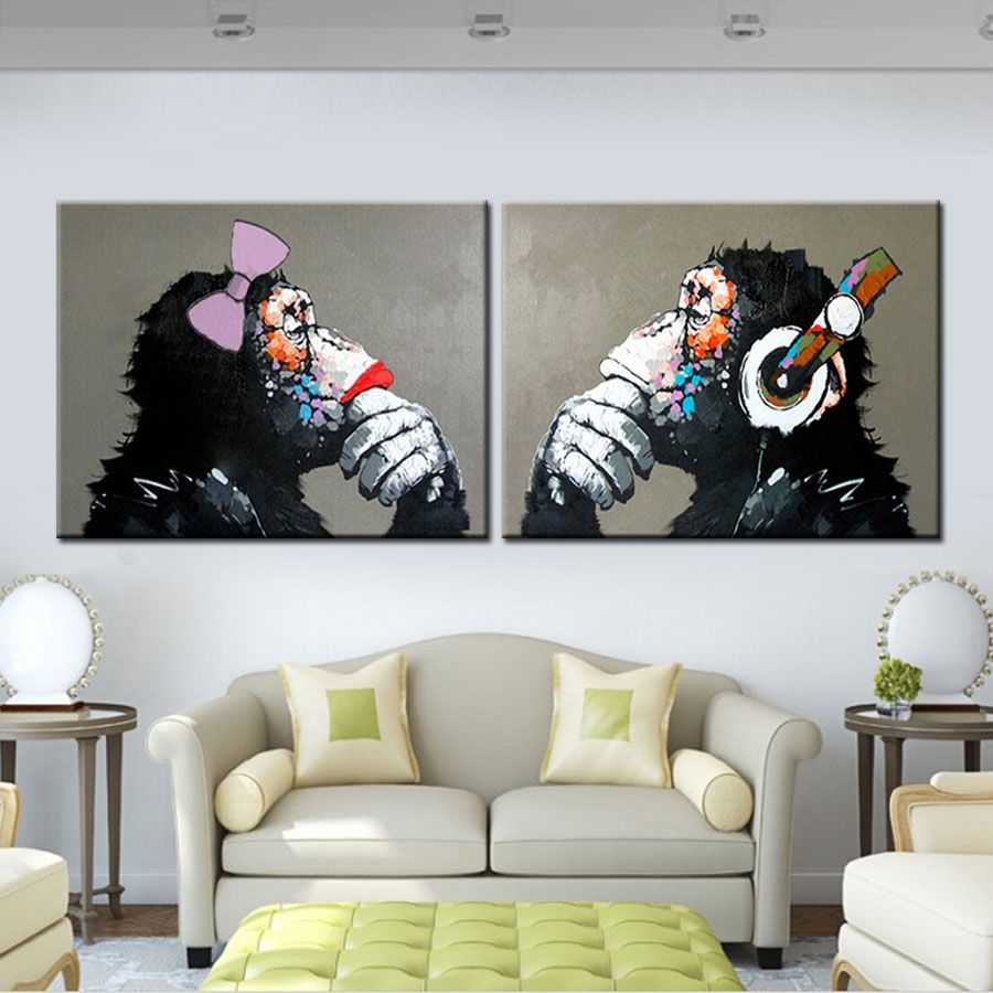 Acquista Dipinto A Mano Divertente Coppia Scimmia Gorilla Orang Pittura Regalo Speciale I Genitori Amante Tela Pittura A Olio Grigio Animale Arte Della Parete A 29 21 Dal Amyartlife Dhgate Com