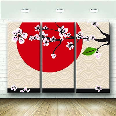 Quadri Giapponesi 3 Pannelli Sole Rosso Fiori Stampa Tela Arte Arredo 240x Ebay