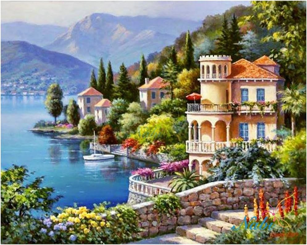 Kit Fai Da Te Per La Creazione Di Quadri 5d Con Cristalli Perline E Strass Da Incollare E Punto Croce Soggetti Paesaggio Mare E Casa F 45x60cm Amazon It Casa E Cucina