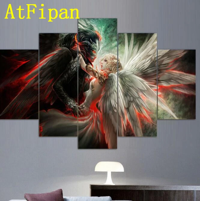 Atfipan Pittura A Olio Del Gruppo Di Arte Della Parete Angelo E Diavolo Amore Su Quadri Su Tela Per Soggiorno Di Buona Qualita Da Parete Modulare Dipinti Oil Painting Paintings On Canvasoil Painting On