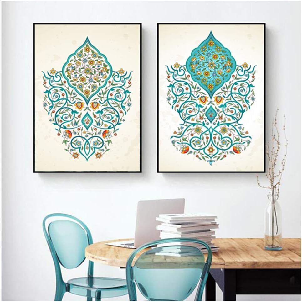 Amazon Com Zxianc Ornato Arabesco Islamico Turchese Floreale Parete Arte Dipinti Su Tela Islam Musulmano Quadri Poster 50x70cm Senza Cornice Posters Prints