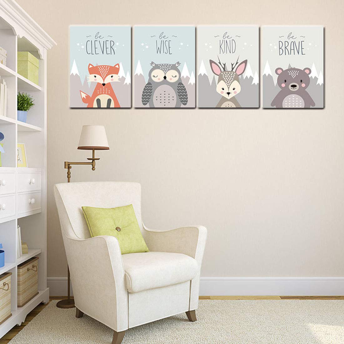 Pinji Set Di 4 Quadri Su Tela Con Stampa Di Animali Di Cartoni Animati Per La Cameretta Del Bambino Senza Cornice Stampe E Quadri Su Tela