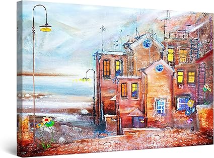 Startonight Quadro Su Tela Citta Greca Astratta Del Pescatore Sulla Pittura Dell Isola Quadri Moderni Stampe Camere Da Letto 60 X 90 Cm Amazon It Casa E Cucina