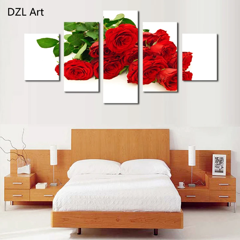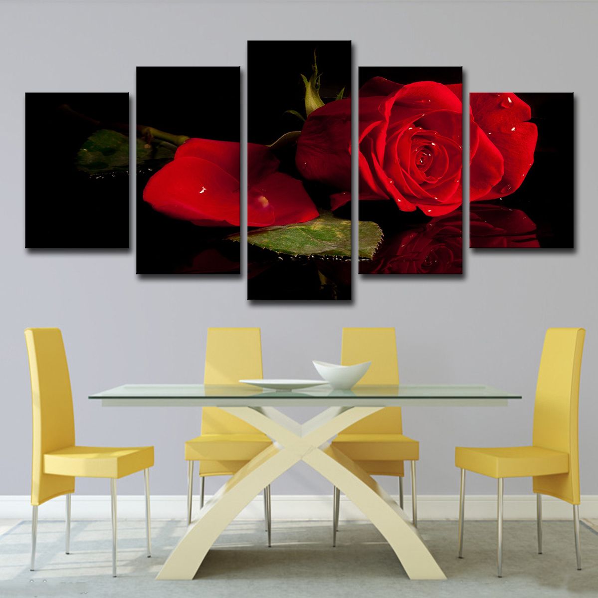 Dipinti Su Tela Quadro Di Arte Della Parete Per Soggiorno Decorazione Domestica 5 Pezzi Splendida Rosa Rose Rosse Fiore Manifesto Stampe Hd Immagini Prints Pictures Canvas Paintingwall Art Aliexpress