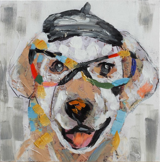 Bubola Quadro Bianco Dipinto A Mano Cane Colorato Con Occhiali A Rilievo Su Tela Ebay