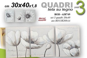 Quadro Rettangolare Tela Su Legno Fiore 3 Pezzi 30x40x1 8 Cm Bod 638749 Ebay