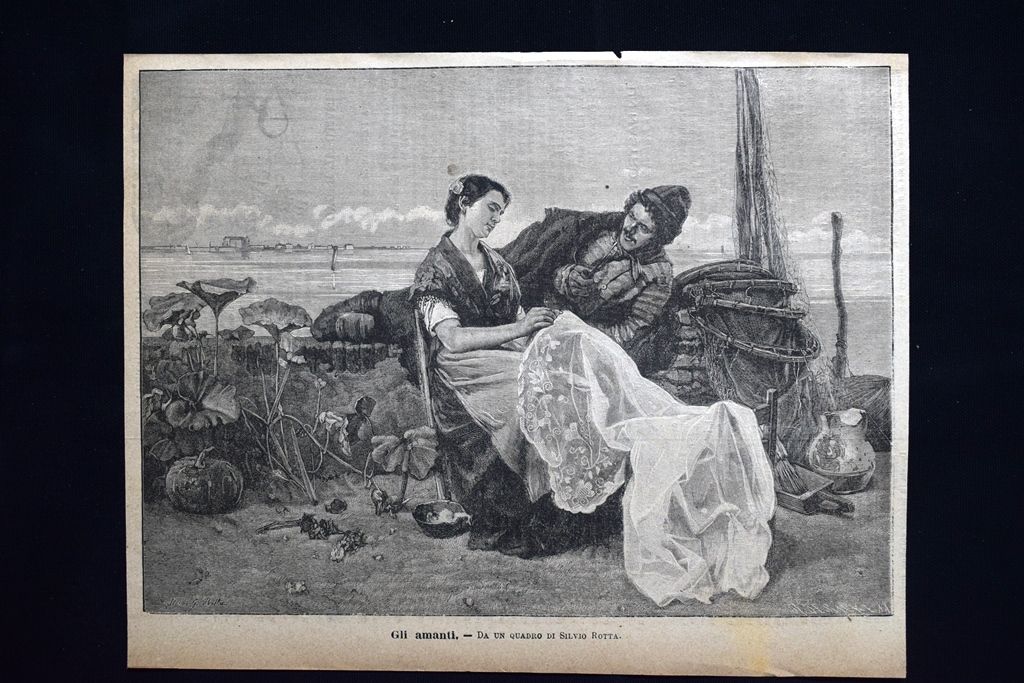 Gli Amanti Da Un Quadro Di Silvio Rotta Incisione Del 1886 Ebay