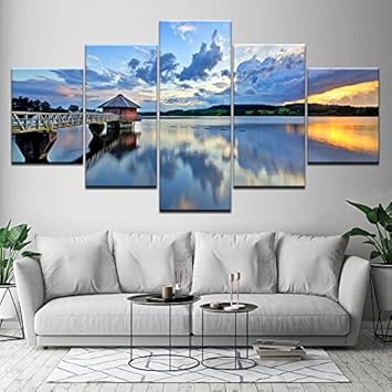 Liuxuyaofa Quadri Su Tela Immagini Poster Modulari Stampa Hd 5 Pezzi Ponte Sul Mare Cielo Blu Nuvola Bianca Paesaggio Marino Pittura Decor Soggiorno 40x60cmx2 40x80cmx2 40x100cmx1 Senza Cornice Amazon It Giochi E Giocattoli