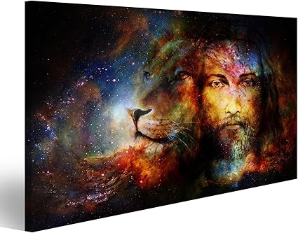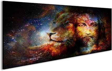 Islandburner Quadri Moderni Pittura Di Gesu Con Un Leone Nello Spazio Cosimc Il Contatto Vis Stampa Su Tela Quadro Fbu Amazon It Casa E Cucina
