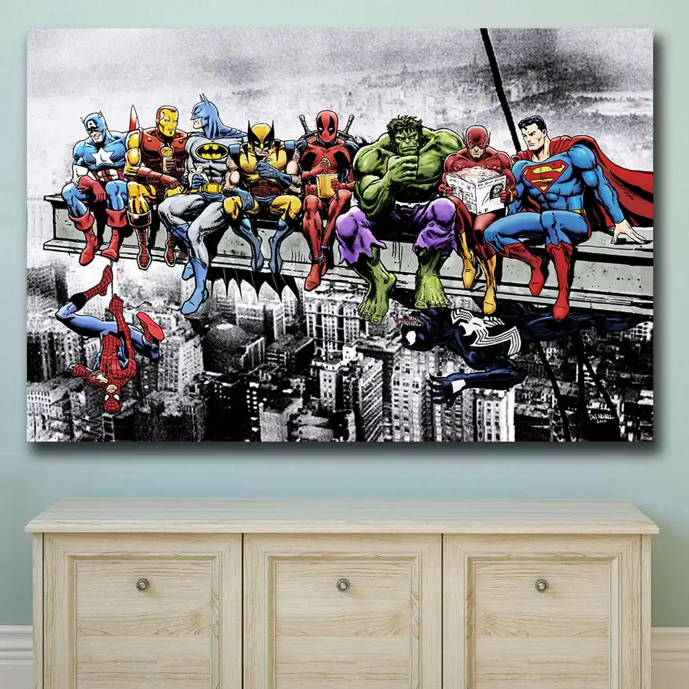 Wxkoil Supereroi Pranzo In Cima A Un Lucerelo Quadri Su Tela Per Soggiorno Camera Da Letto Moderna Pittura A Olio Su Tela Picture For Living Room Wall Picturesoil Painting Aliexpress