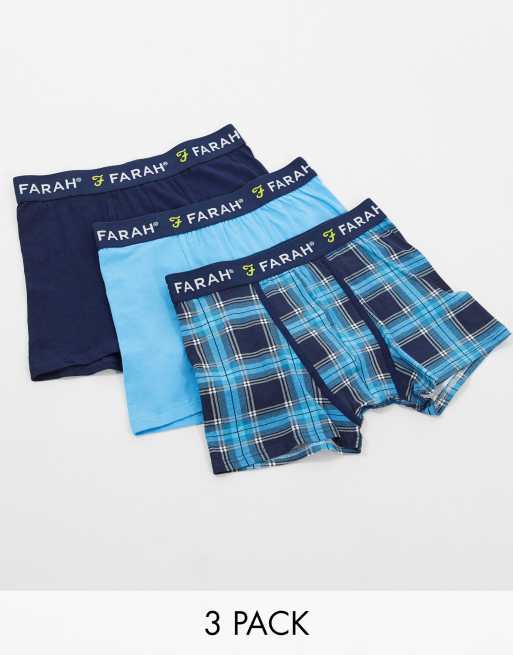 Farah Ratton Confezione Da 3 Boxer Tinta Unita Blu E A Quadri Asos