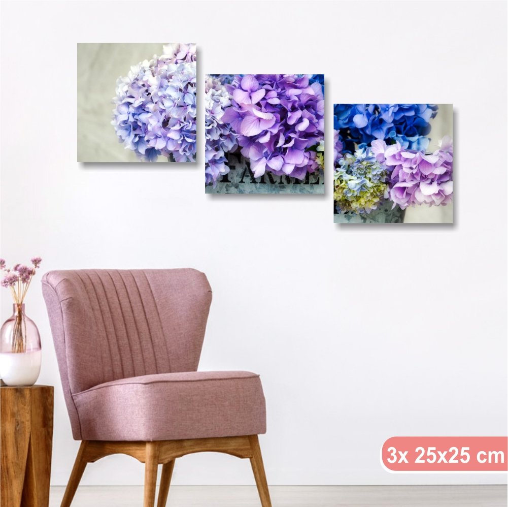 Fiori Rosa Viola Blu Provenzale Stampa Su Tela Arredamento Vintage Legno Salotto Camera Da Letto 25x25 Cm Quadri L C Italia Tris Ortensie Lilla 1 Tre Pannelli Moderni 3x
