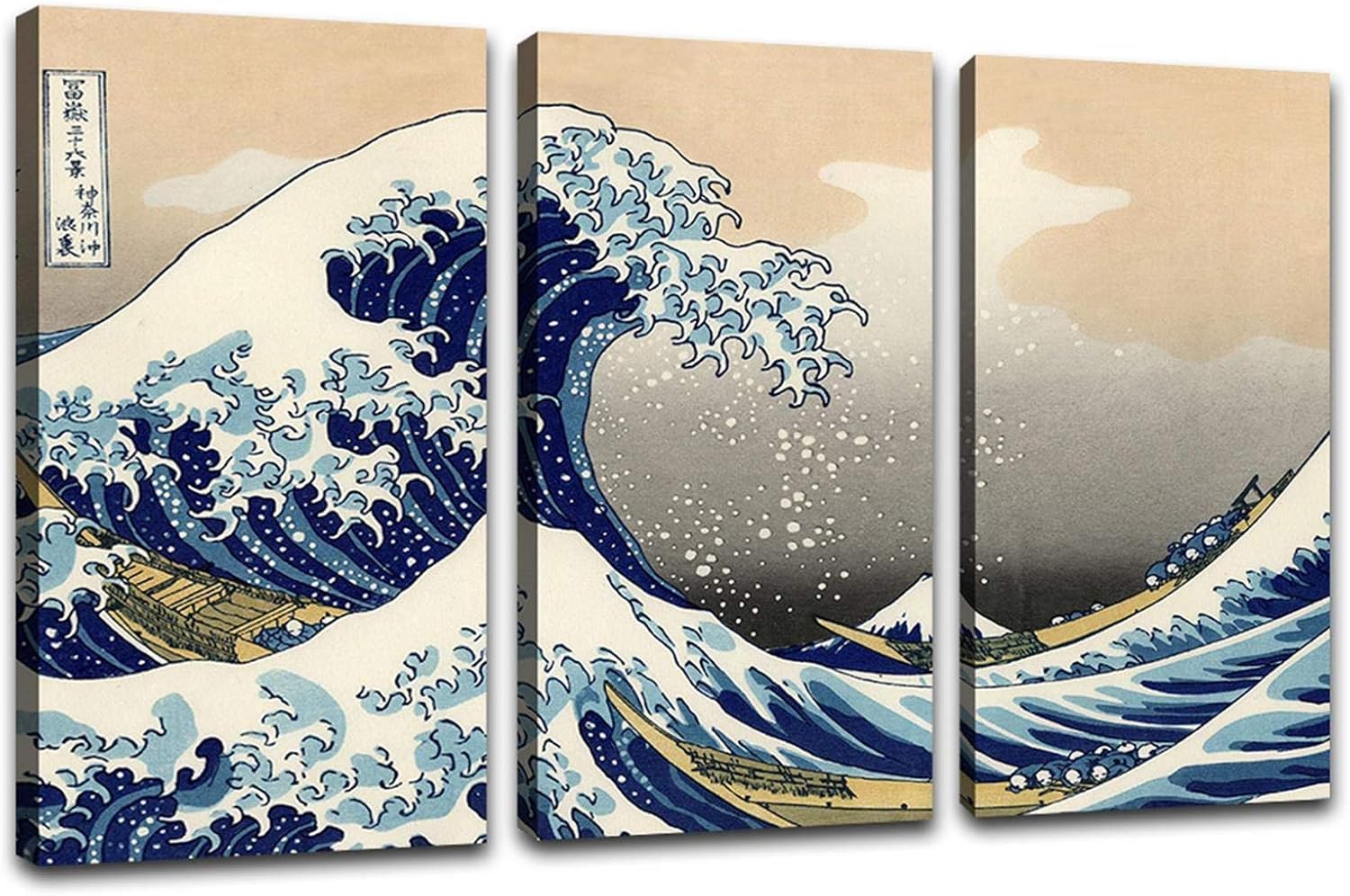Canvashop Quadri Moderni Soggiorno Hokusai La Grande Onda Cm 113x70 Stampa Su Tela 3 Pezzi Poster E Stampe Decorazioni Per Interni