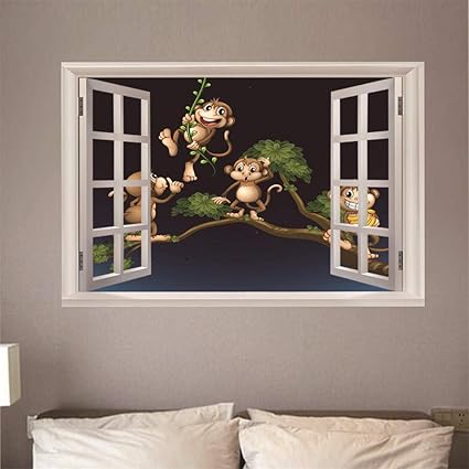 Carta Da Parati Quadri Murali Fotomurale Finestra 3d Fotomurali Scimmia Cartone Animato 60x90cm Amazon It Fai Da Te