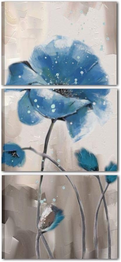Quadro Verticale Dipinto A Mano Su Tela Con Fiori Blu Grigio Trittico Casa Nice Lk