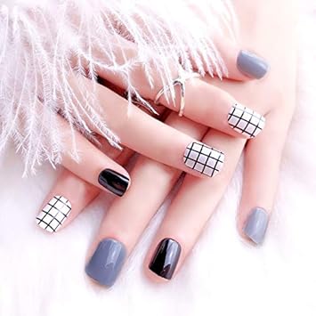 Unghie Finte Patch Per Unghie A Strisce A Quadri In Bianco E Nero Impermeabile 24 Pezzi Staccabile Amazon It Bellezza