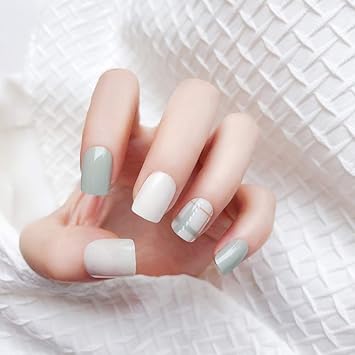 Qulin Unghie Finte Dal Design Semplice Colore Azzurro Finte Finte Finte A Quadri Con Colla Set Da 24 Pezzi Amazon It Bellezza