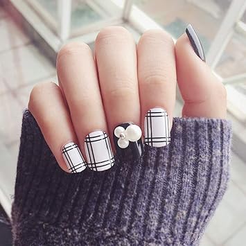 Unghie Finte Alla Moda Con Motivo A Quadri Bianchi E Neri Per Manicure Nail Art Saloni Di Bellezza Unghie Finte Con Colla Inclusa Amazon It Bellezza