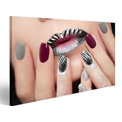 Islandburner Quadro Moderno Design Con Strisce Bianche E Nere Sulle Labbra E Unghie Con Glitter Stampa Su Tela Quadri Moderni X Poltrone Salotto Cucina Mobili Ufficio Casa Gav Amazon It Casa