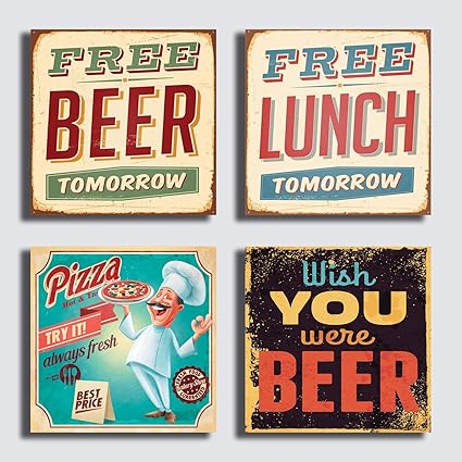Quadri Moderni 4 Pezzi 40x40 Cm Stampa Su Tela Canvas Quadro Moderno Arredamento Vintage Bar Negozio Pizzeria Ristorante Caffe Pizza Pub Birra Amazon It Casa E Cucina