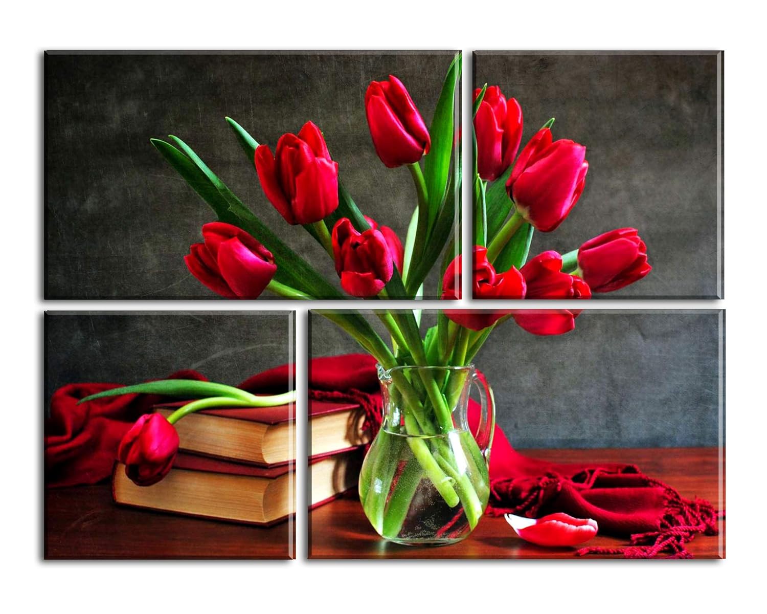 Quadri L C Italia Tulipani Vintage 3 Quadro Moderno Fiori Shabby Chic 70 X 50 Stampa Su Tela Per Soggiorno Camera Da Letto Cucina Decorazioni Da Parete Arredamento Casa Arte Dipinti