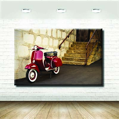 Canvas Wall Art A Red Vespa Scooter Parked On A Paved Street Ebay