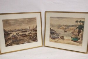 Bellissima Coppia Di Quadri Di Barche Acquarello Su Carta Watercolor Ebay