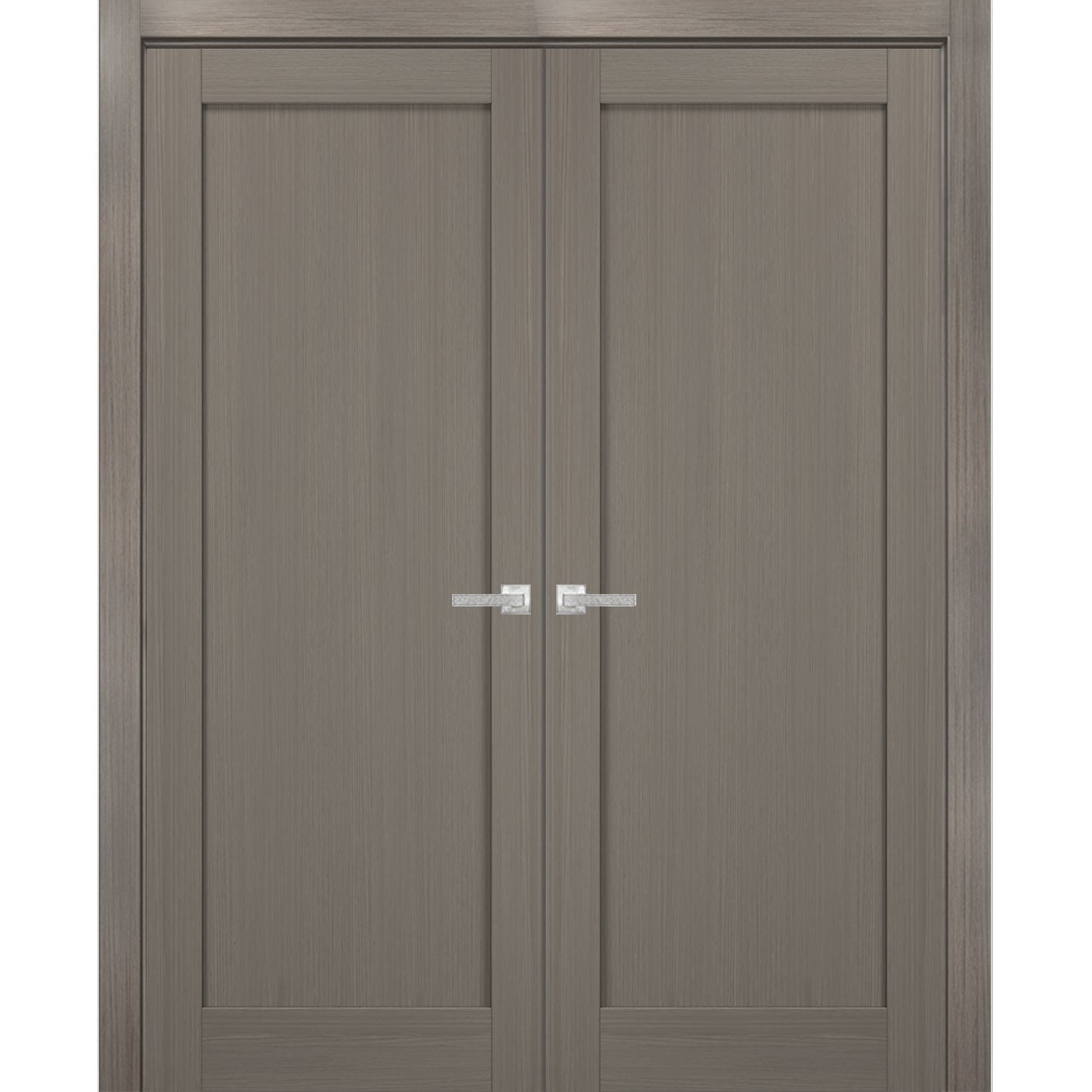 French Double Panel Doors 60 X 80 With Hardware Quadro 4111 Grey Ash Pre Hung Panel Frame Trims Bathroom Bedroom Interior Sturdy Door Walmart Com Walmart Com