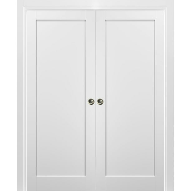 French Double Pocket Doors 60 X 80 With Frames Quadro 4111 White Silk Kit Trims Rail Hardware Solid Wood Interior Pantry Kitchen Bedroom Sliding Closet Sturdy Door Walmart Com Walmart Com