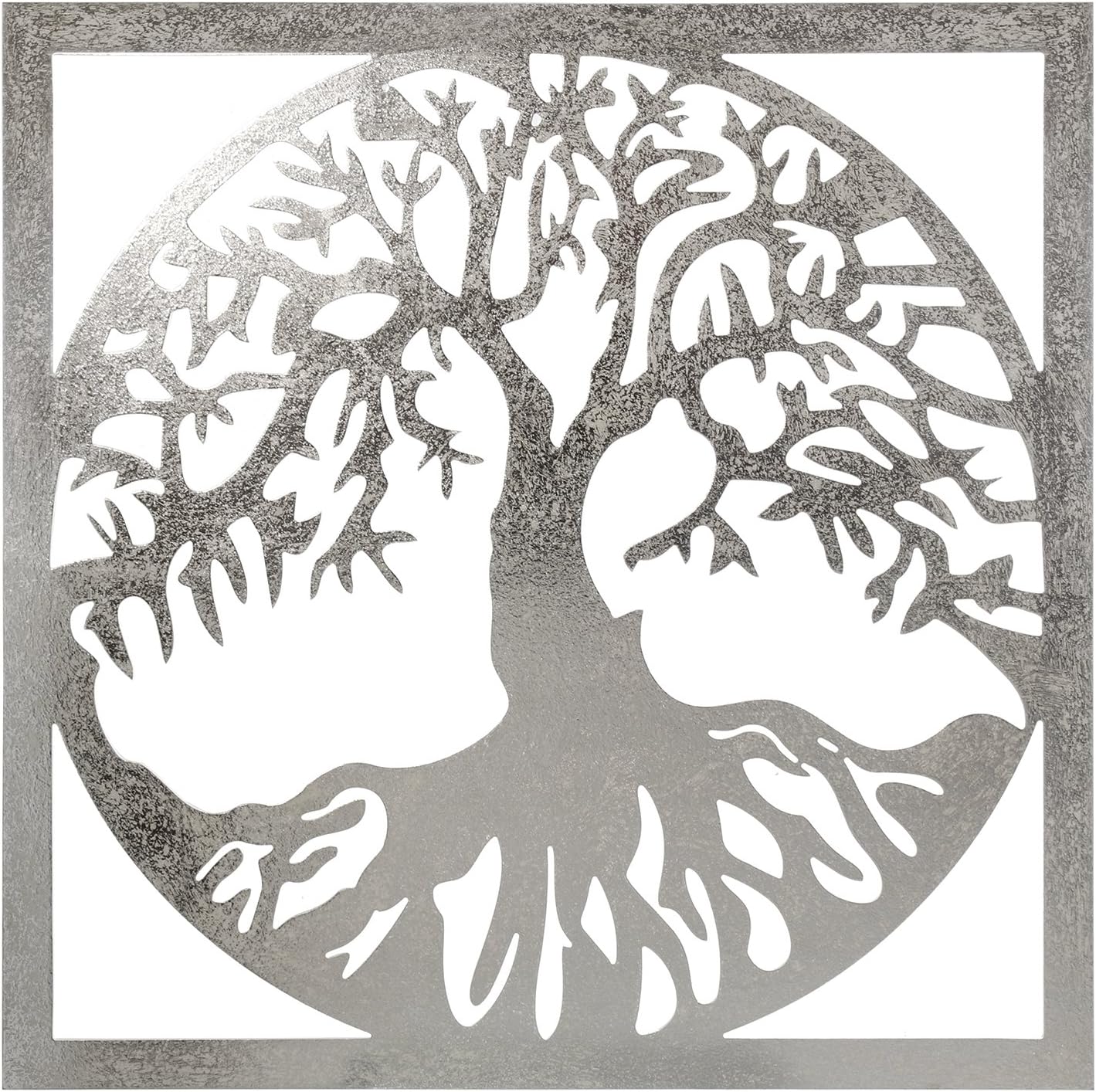 Formano Decorazione Da Parete Motivo Albero Della Vita Rotondo D 64 Cm Legno Naturale E Argento Amazon It Casa E Cucina