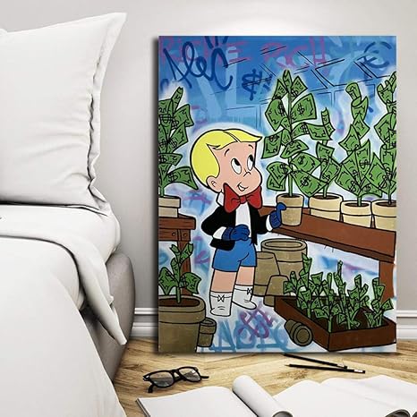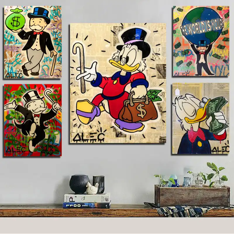 Amazon Com Modern Graffiti Canvas Poster Alec Monopoly Home Decor Print Richie Rich Painting Wall Money Tree Modular Image For Bedroom 50x70cm No Frame Posters Prints