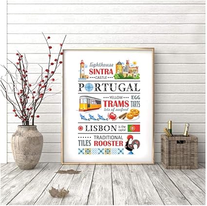 Zhaoyangeng Simboli Portoghesi Quadro Su Tela Articolo Pittura Architettura Alimentare Diario D Arte Poster D Arte Regalo Per Viaggiatori Decorazioni 50x70 Cm Senza Cornice Amazon It Casa E Cucina