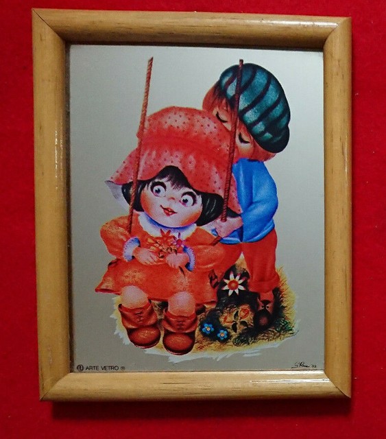 Quadro A Specchio Printed Mirror Arte Vetro G Rossi 82 Bimbi Su Altalena Fiori Ebay