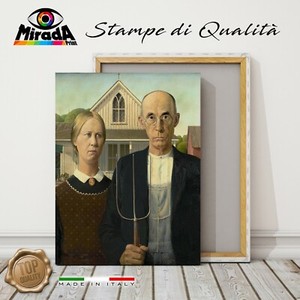 Quadro Grant Wood American Gothic America Lavoro Campi Stampa Tela Canvas Top Ebay