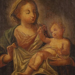 Antico Dipinto Italiano Religioso Madonna Con Bambino Del Xviii Secolo