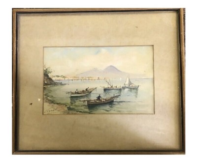 Antico Quadro Marina Golfo Napoli Antonio Coppola 1800 Vesuvio Acquerello Veduta Eur 1 199 00 Picclick It