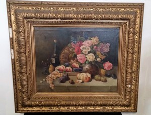 Dipinto Antico Olio Su Tela Raffigurante Natura Morta Xix Secolo