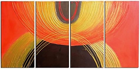 Quadro Astratto Verticale 4 Tele Linee Onde Colori Caldi Artemente