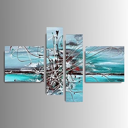 Art Mmb Turchese 4 Quadri Moderni Astratto Dipinto A Mano Su Tela Gia Intelaiato Amazon It Casa E Cucina