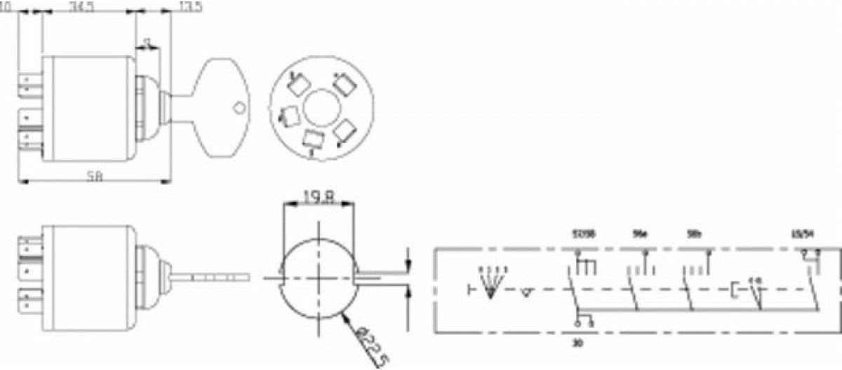 Quadro Avviamento Tipo Fiat 9955994 4 Posizioni Con Preriscaldo Chiave Estraibile Solo Nelle Posizioni 0 1